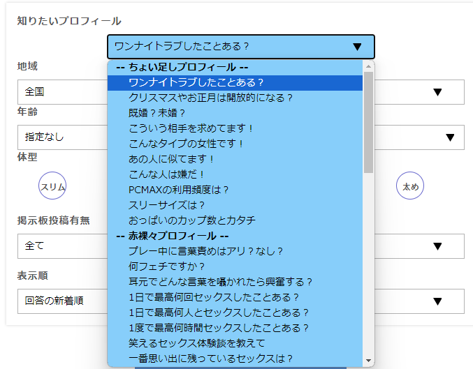 プロフィール検索でもかなり大人な内容を含んで検索することができますし、